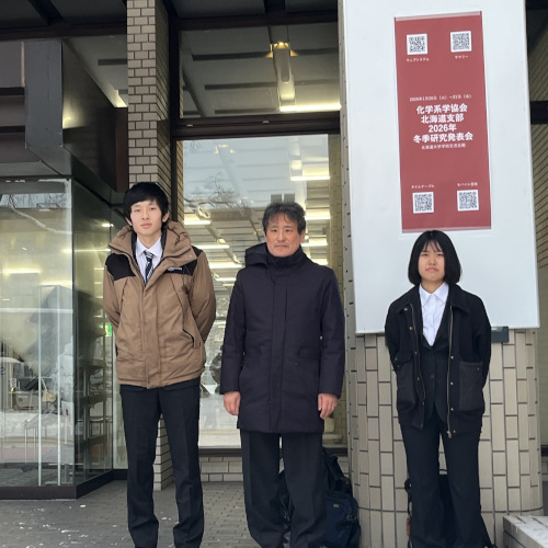 令和8年2月5日北見工業大学大学院工学研究科応用化学専修プログラムの修士論文発表会が、3月13日に工学部先端材料物質工学コースの卒論発表会が、 それぞれ実施され、M2の北舘、北澤、高田、B4の倉岡、藤原、山下の合計6名が無事に卒業できる事になりました。さらにM2の北舘は、応用化学プログラムの 優秀学生として表彰される予定です。皆さん、お疲れ様でした。そして、おめでとうございます。